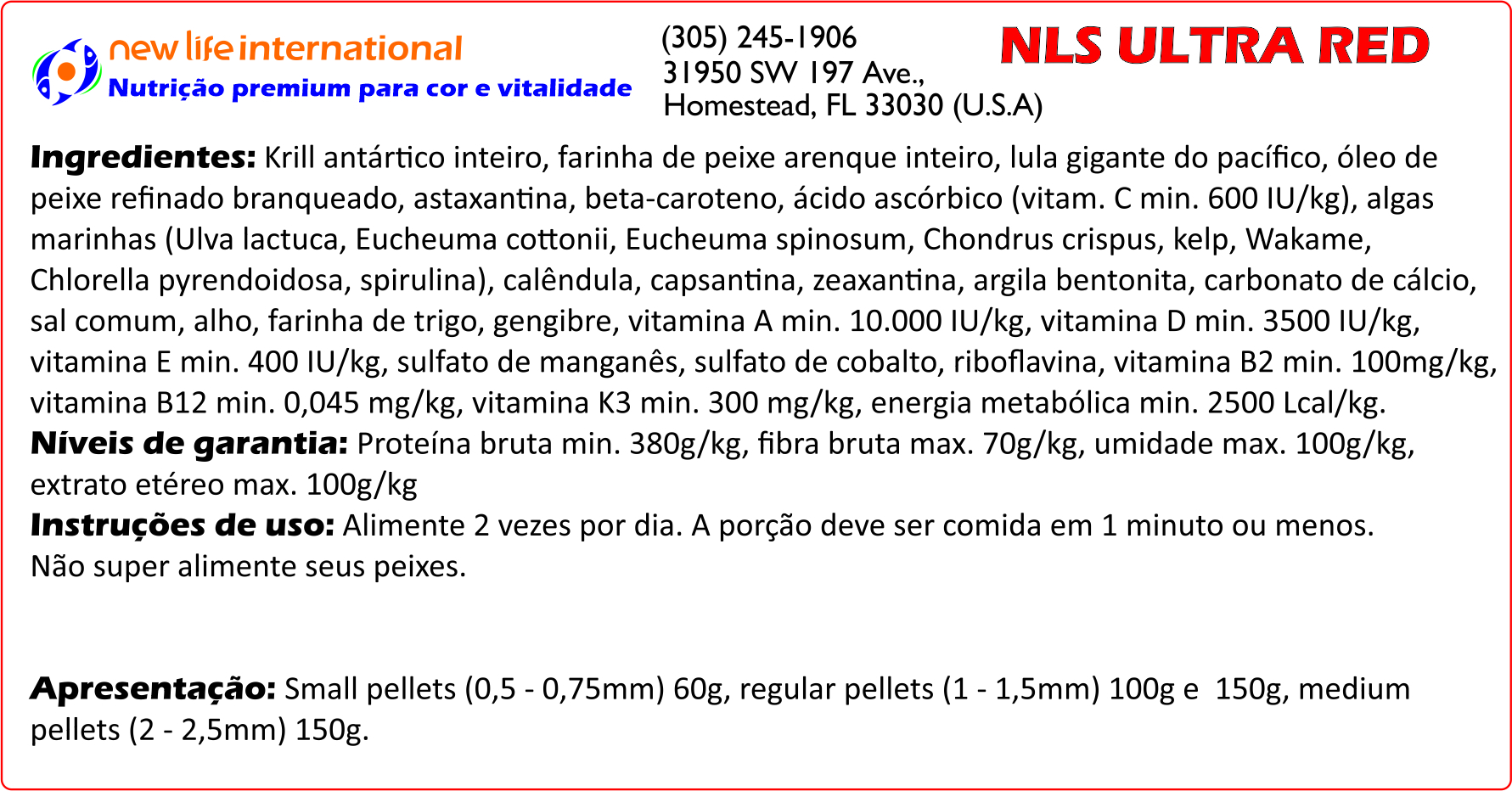 Incluído nas fórmulas AlgaeMAX: As algas da classe Rhodophyta (conhecidas comumente como “algas vermelhas”) são uma das nove variedades de algas presentes no New Life Spectrum® AlgaeMAX. As algas vermelhas são extremamente ricas em antioxidantes, além de proteínas, vitaminas e fibras. Nossa fórmula herbívora apresenta nove variedades de algas marinhas, incluindo as algas vermelhas, verdes, azul esverdeadas e marrons. Esta abordagem garante que seus companheiros de aquário herbívoros tenham a dieta multifacetada ideal para o peixe.