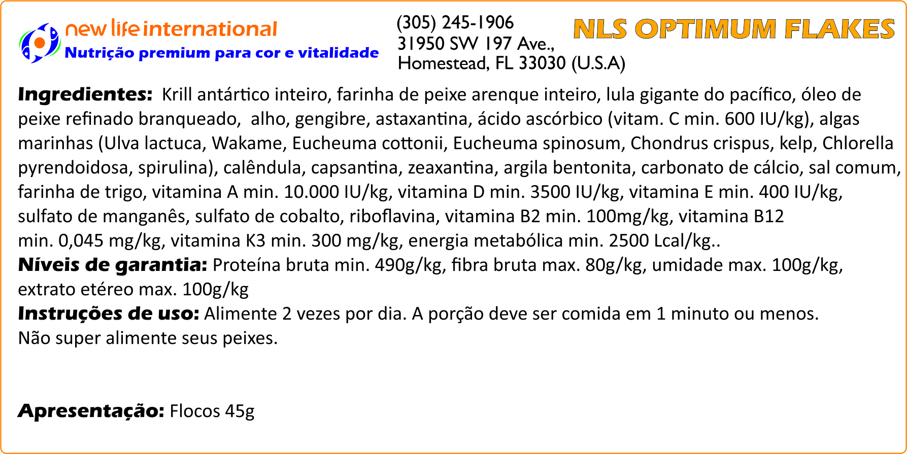 Muitas vezes, aquaristas dosam a água com oligoelementos para tentar replicar este ambiente em que os peixes absorvem as micro-quantidades necessários através de suas guelras. Embora a inclusão de oligoelementos na água do seu aquário seja recomendada, a New Life adota uma abordagem diferente: ao incentivar a ingestão direta desses oligoelementos, podemos ter certeza de que os peixes recebem o que precisam em doses adequadas e os entregam à corrente sanguínea. Por esse motivo, todas as fórmulas New Life Spectrum® são aprimoradas com suplementos de oligoelementos.