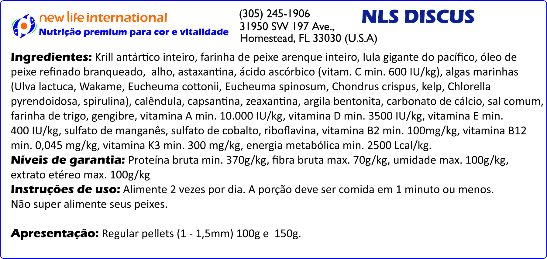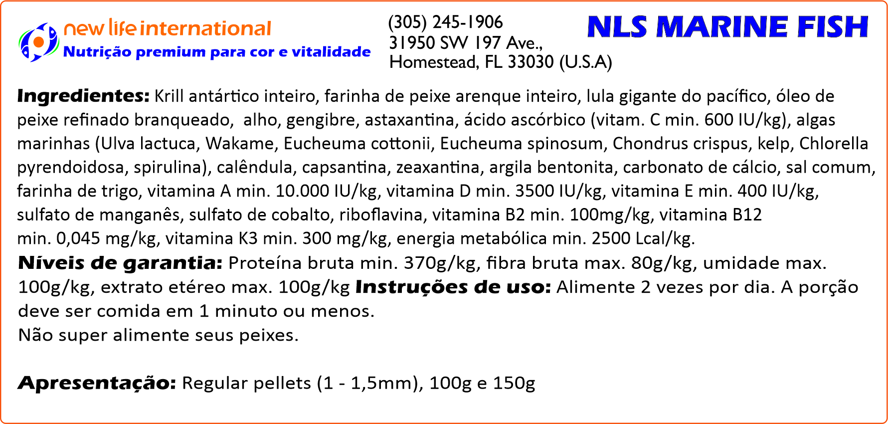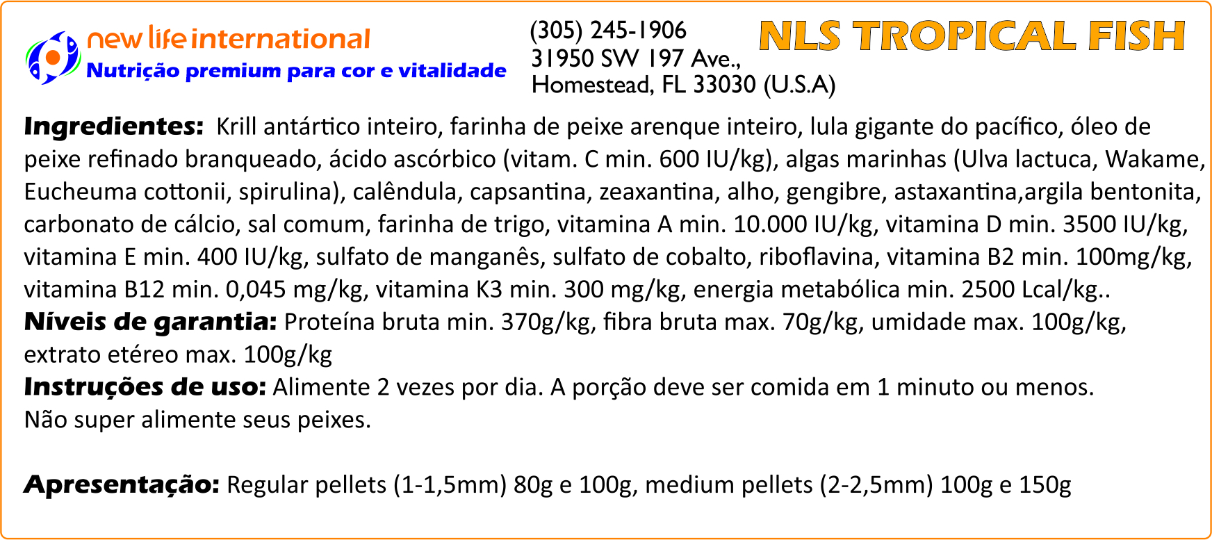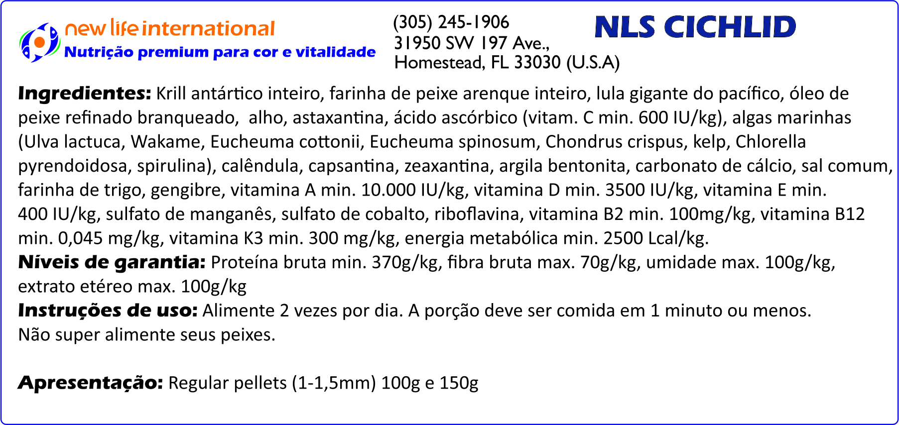 Muitas vezes, aquaristas dosam a água com oligoelementos para tentar replicar este ambiente em que os peixes absorvem as micro-quantidades necessários através de suas guelras. Embora a inclusão de oligoelementos na água do seu aquário seja recomendada, a New Life adota uma abordagem diferente: ao incentivar a ingestão direta desses oligoelementos, podemos ter certeza de que os peixes recebem o que precisam em doses adequadas e os entregam à corrente sanguínea. Por esse motivo, todas as fórmulas New Life Spectrum® são aprimoradas com suplementos de oligoelementos.