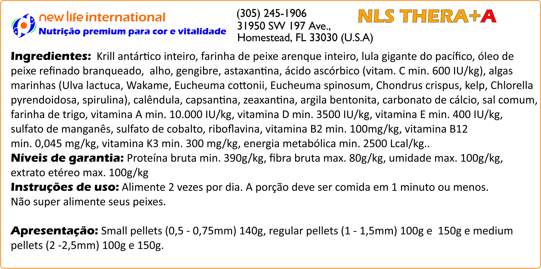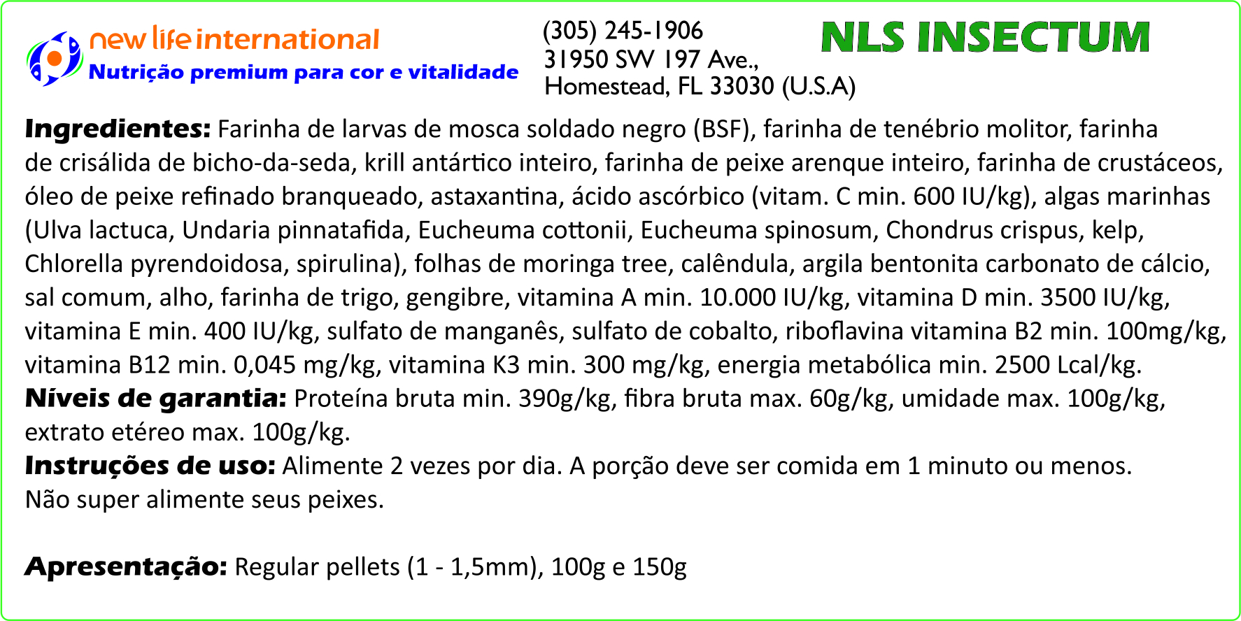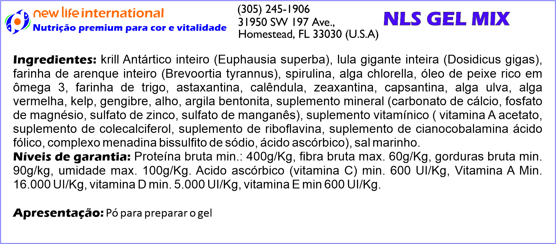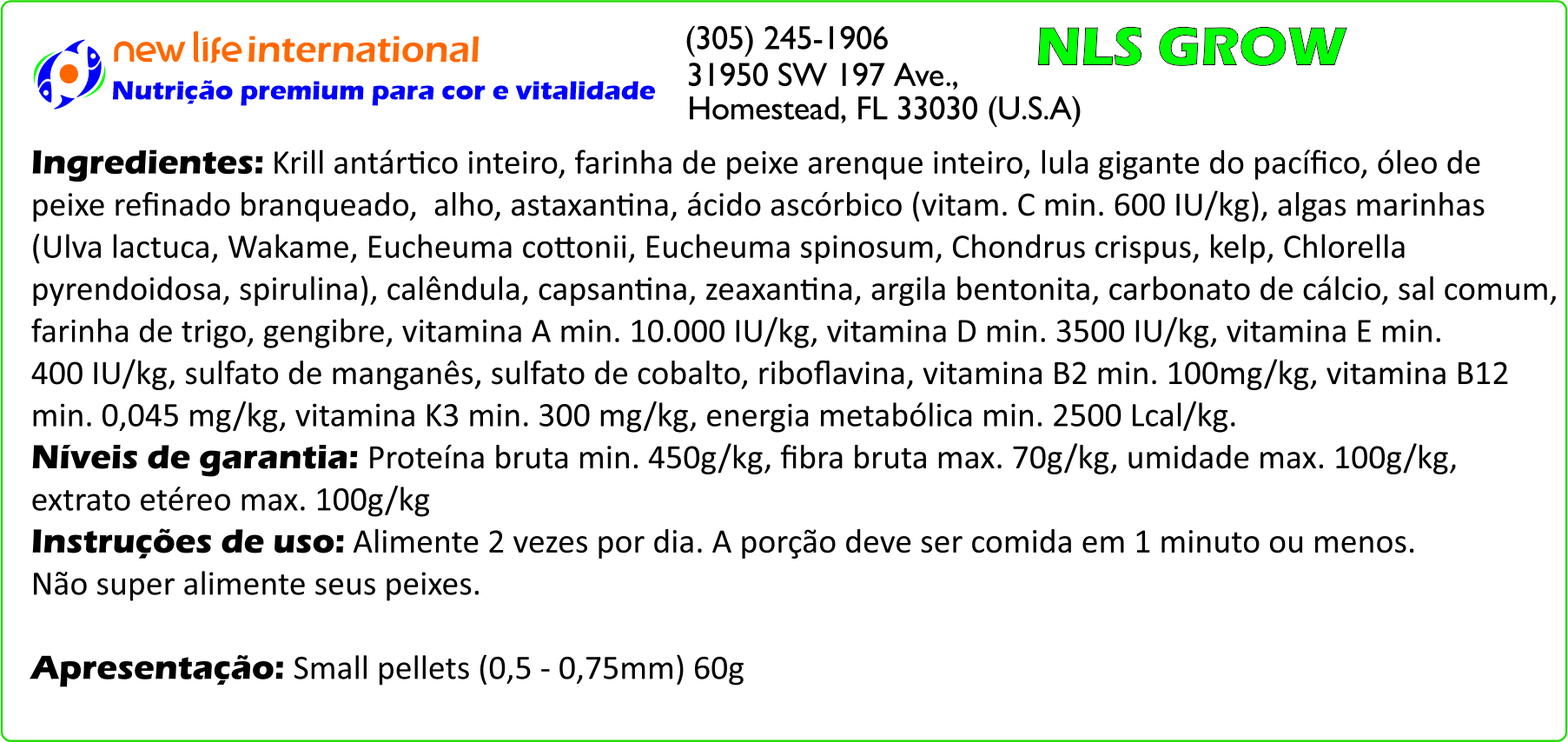 Muitas vezes, aquaristas dosam a água com oligoelementos para tentar replicar este ambiente em que os peixes absorvem as micro-quantidades necessários através de suas guelras. Embora a inclusão de oligoelementos na água do seu aquário seja recomendada, a New Life adota uma abordagem diferente: ao incentivar a ingestão direta desses oligoelementos, podemos ter certeza de que os peixes recebem o que precisam em doses adequadas e os entregam à corrente sanguínea. Por esse motivo, todas as fórmulas New Life Spectrum® são aprimoradas com suplementos de oligoelementos.