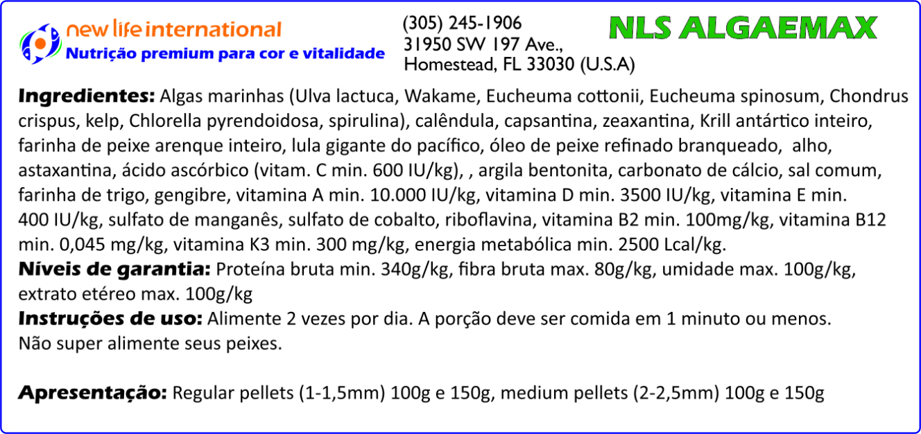 Incluído nas fórmulas AlgaeMAX: As algas da classe Rhodophyta (conhecidas comumente como “algas vermelhas”) são uma das nove variedades de algas presentes no New Life Spectrum® AlgaeMAX. As algas vermelhas são extremamente ricas em antioxidantes, além de proteínas, vitaminas e fibras. Nossa fórmula herbívora apresenta nove variedades de algas marinhas, incluindo as algas vermelhas, verdes, azul esverdeadas e marrons. Esta abordagem garante que seus companheiros de aquário herbívoros tenham a dieta multifacetada ideal para o peixe.