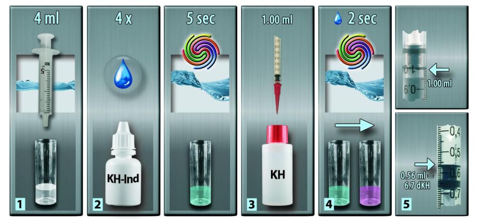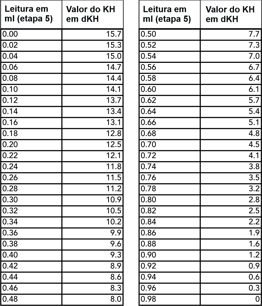 Se você coletou 2 ml de água na etapa 1, então multiplique o valor KH por 2.