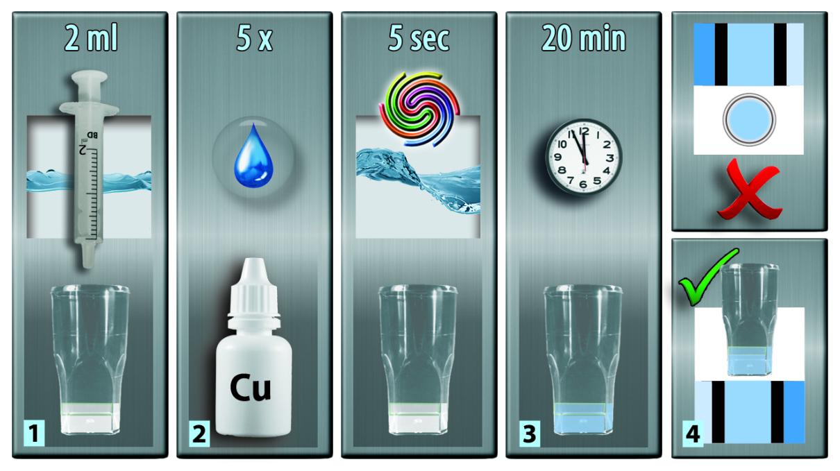 1] Adicione 2 ml de água no frasco de teste.
