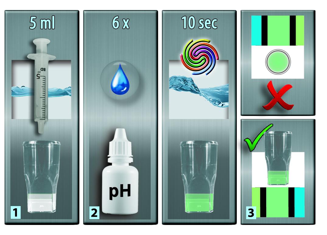 2] Adicione 6 gotas do reagente de pH e agite suavemente por 10 segundos.